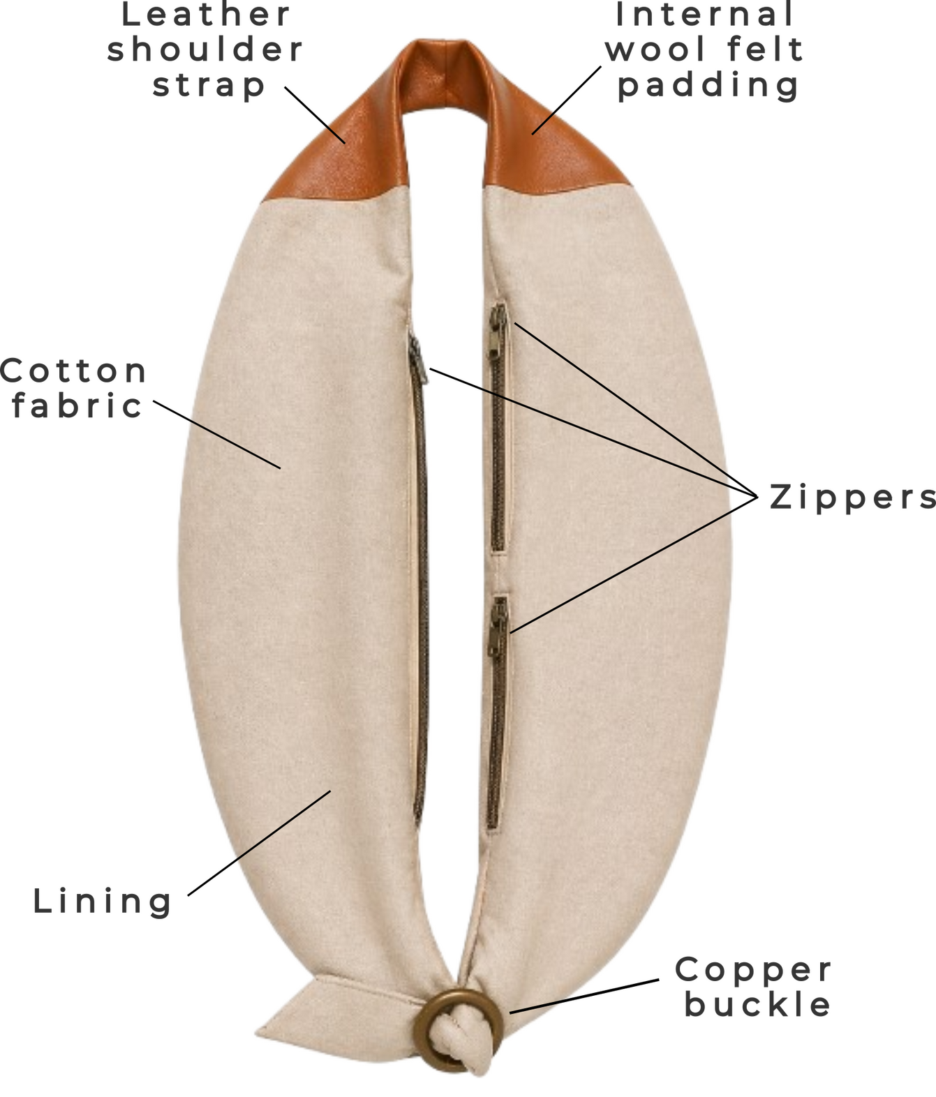 Drying and shaping: Air-dried, cut to shoulder-strap insert dimensions